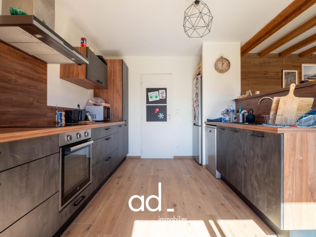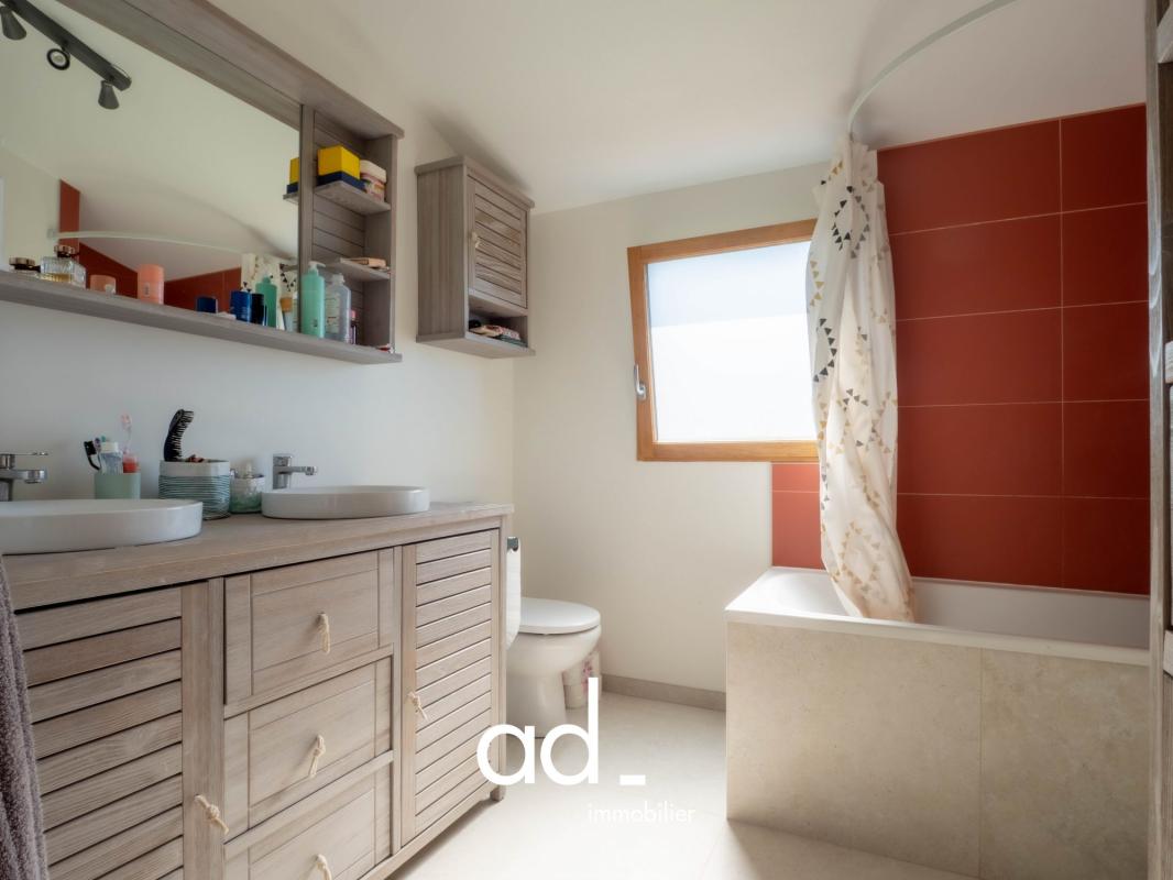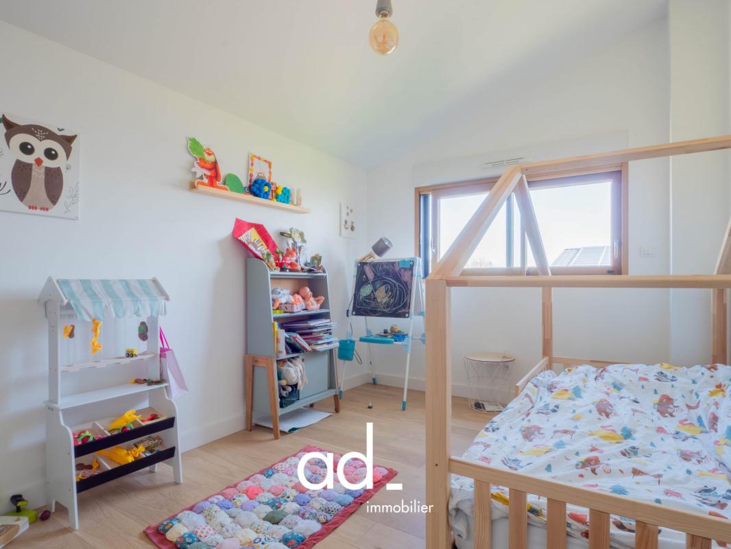 Elle offre au rez-de-chaussée une entrée, une magnifique pièce de vie de 55 m² lumineuse et conviviale comprenant un salon chaleureux avec poêle à bois, un espace salle à manger et de larges ouvertures sur le jardin, ainsi qu’une cuisine ouverte entièrement équipée.Vous y trouverez également une suite parentale avec salle d’eau privative et un WC indépendant.