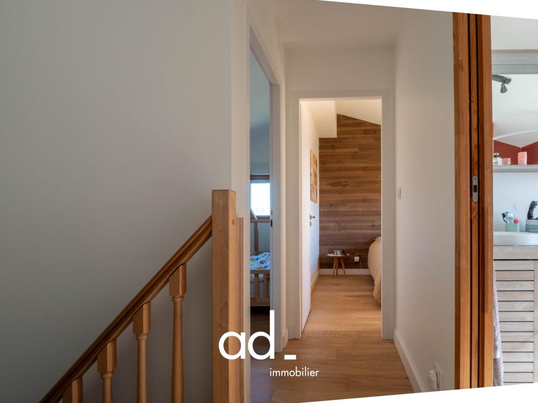 À l’étage, un couloir dessert 4 chambres supplémentaires ainsi qu’une salle de bains avec WC, offrant au total 5 chambres, un véritable atout pour une famille ou pour recevoir.