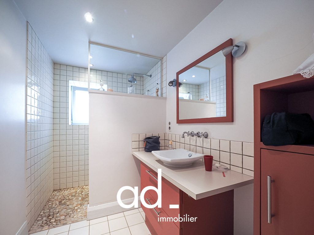 Elle possède une entrée donnant accès à un grand séjour de 64m² avec une cuisine indépendante, trois chambres dont une suite parentale avec salle d’eau, une autre salle d’eau et 3 toilettes ainsi que de nombreux rangements.