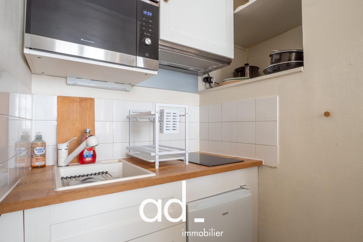 Ce logement est composé d’une entrée sur la pièce de vie avec un coin nuit à l’écart. Une cuisine aménagée et équipée, un WC séparé de la salle d’eau avec fenêtre. Le studio comporte de nombreux rangements.