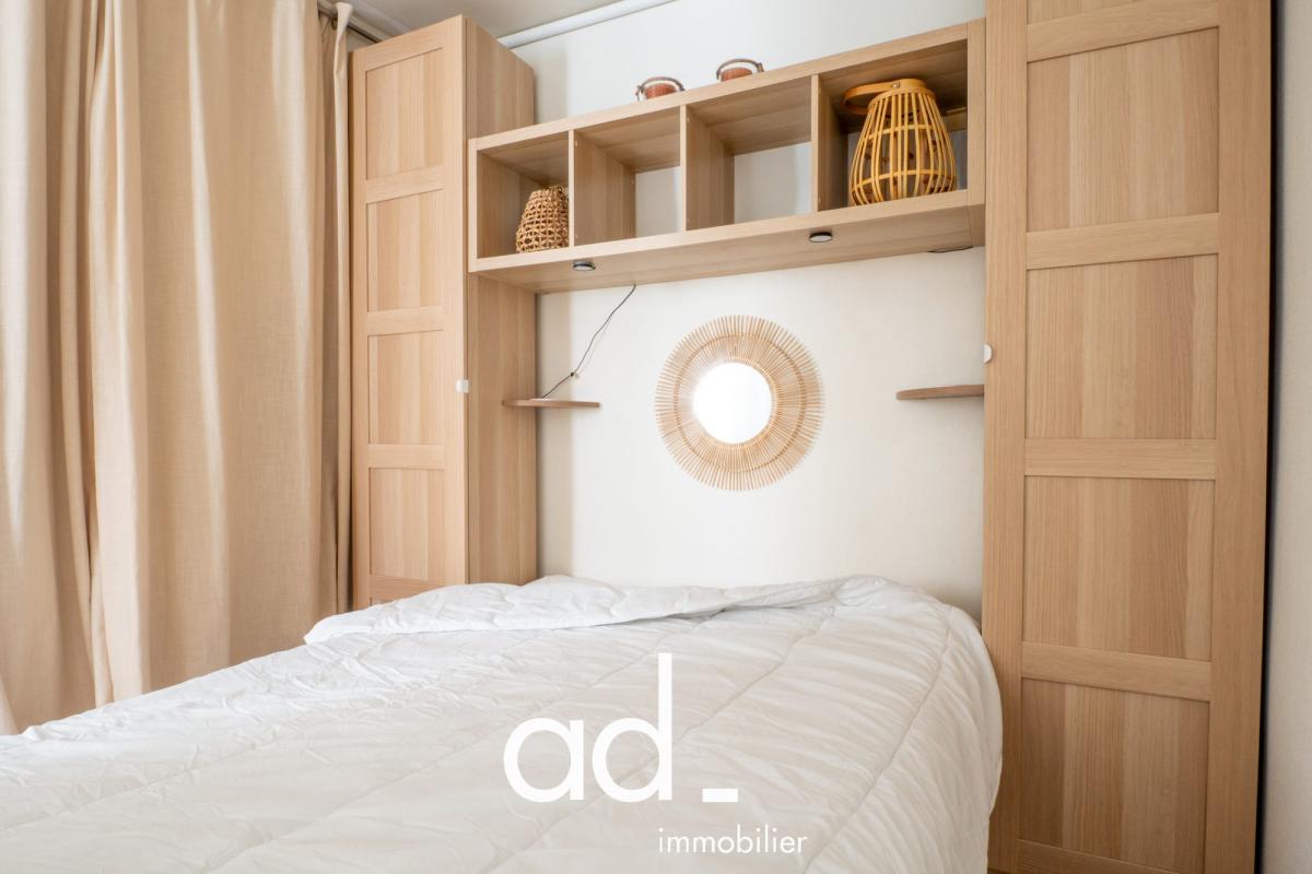Ce logement est composé d’une entrée sur la pièce de vie avec un coin nuit à l’écart. Une cuisine aménagée et équipée, un WC séparé de la salle d’eau avec fenêtre. Le studio comporte de nombreux rangements.