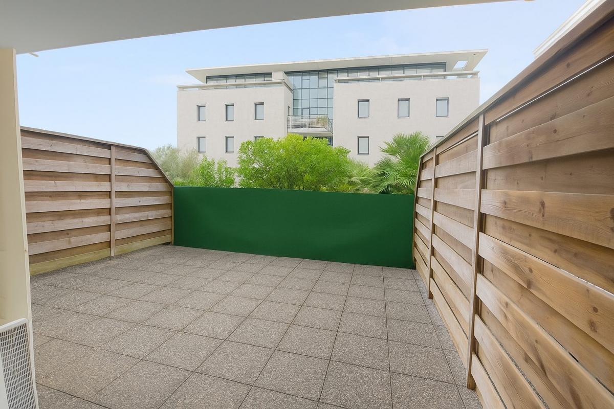 Cet appartement situé au RDC d’un immeuble dans le quartier des Minimes, se compose d’une entrée avec placard suivie d’une ouverture sur la pièce principale, lumineuse grâce à sa grande baie-vitrée qui donne sur une terrasse non meublée de 22m2.