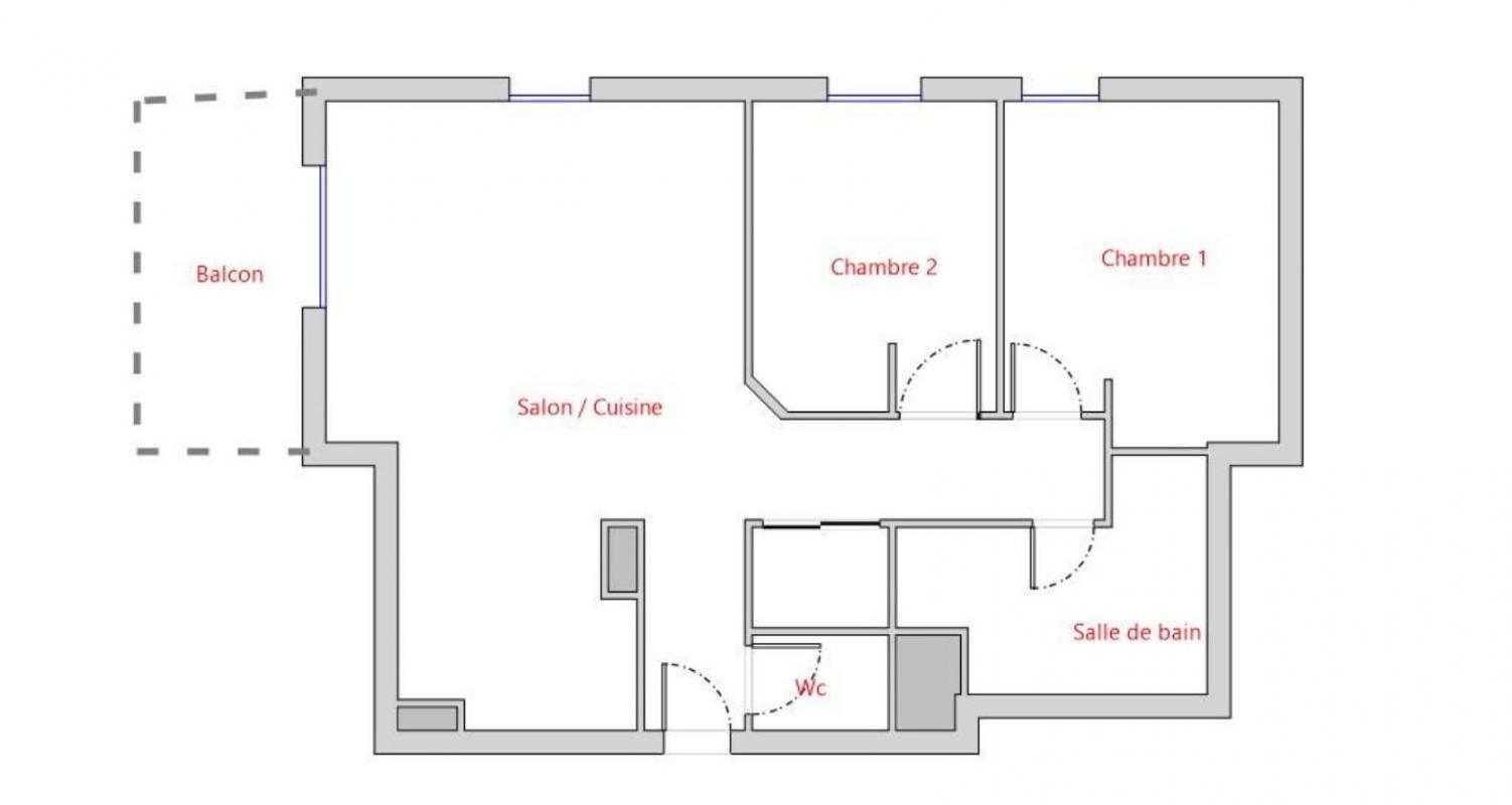 Ce bien se compose d’une entrée, un séjour lumineux avec coin cuisine, deux chambres avec placard, une salle de bains, un wc indépendant, une terrasse d’environ 8m².