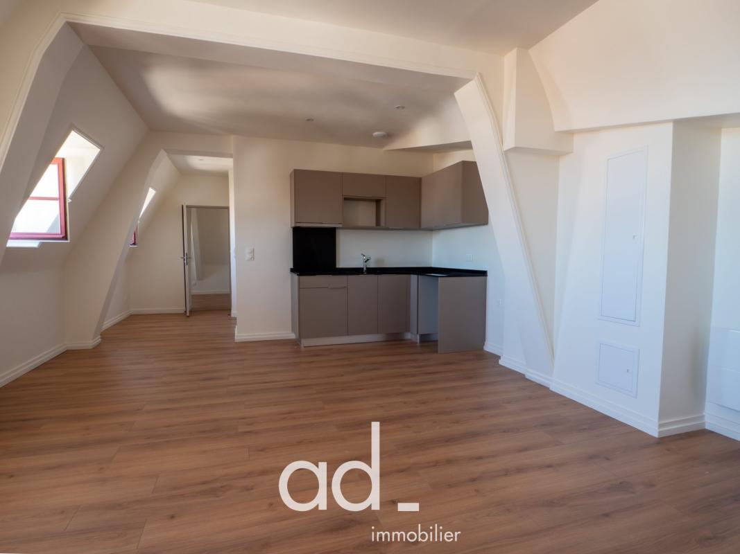 L’entrée s’ouvre sur un espace distinct avec rangements, desservant une première chambre. Vous accédez ensuite à une vaste pièce de vie d’environ 50 m², offrant de beaux volumes et une cuisine ouverte, partiellement équipée. L’appartement dispose également d’une salle d’eau moderne, de WC indépendants ainsi que d’une seconde chambre.